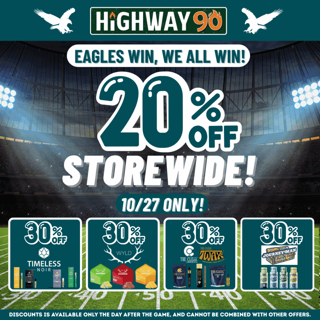 Green Wednesday deals are here! Take advantage of week-long savings on all your favorite cannabis products. Dubbed the Black Friday of the cannabis industry, Highway 90 has deals worth shopping all week long! Prep for the holidays and make sure you have everything you need- with the help of weeklong savings at Highway 90 in Marlton, NJ!