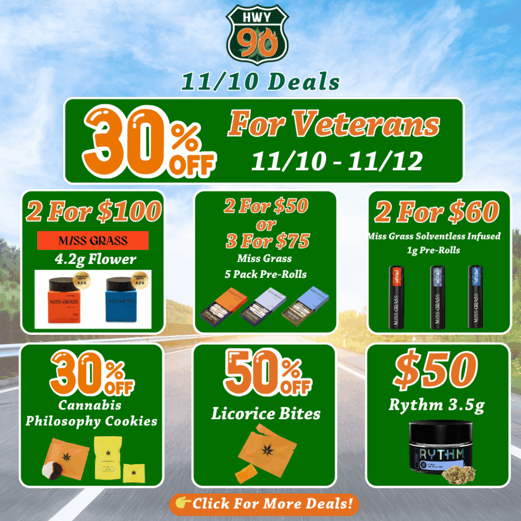 🛣️Today’s Deals: 🖤50% Off Licorice Bites🖤 🍪30% Off Cannabis Philosophy Cookies🍪 🌿Miss Grass: 5 Pk Pre-Roll Bundle: 2 For $50 Or 3 For $75, 2 For $60 Infused Pre-Rolls & 2 For $100 Miss Grass 4.2g Flower🌿 🍬15% Off OGeez!🍬 👑$10 Craft Kings Indica 1g Pre-Roll👑 ⭐$50 Rythm 3.5g⭐ 🍯20% Off Cali Honey 2g Disposables🍯 🏀$9 Euro Step 1g Pre-Roll🏀