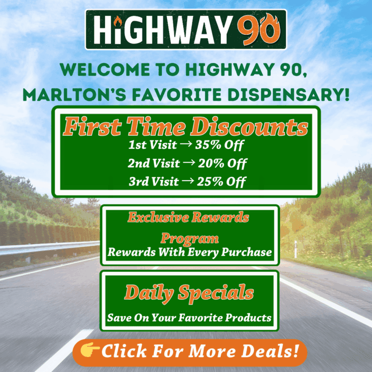 🍃25% Off Half Ounces🍃          🍃25% Off Ounces🍃              ☀️50% Off Select Sun & Space Ranger Products☀️       🍬$15 Fruits & Creams OGeez!🍬        🌿7g Ozone & Simply Herb Bundles🌿          💗2 For $50 or 3 For $75  Miss Grass 5pk Pre-Rolls💗      ✨2 For $100 Miss Grass 4.2g Flower✨      🌿1g Pre-Roll Bundle🌿        🛣️35% Off At Your 1st Visit           🛣️20% Off At Your 2nd Visit          🛣️25% Off At Your 3rd Visit          📲Update Your Highway 90 App For The Latest Version!