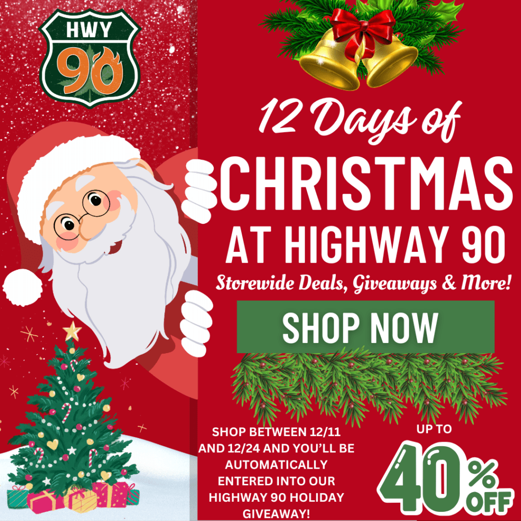 🎁12 Days Of Christmas At Highway 90 Is Here!      🚜40% Off The Farmers Market🚜        ⚡30% Off Miss Grass⚡      ❤️30% Off Rythm❤️        ❄️30% Off The Essence Flower❄️          🍬Buy 1, Get 1 For A Penny Wyld Edibles🍬                           🎄30% Off Jersey Smooth🎄          🎁20% Off Highway 90 Gift Cards🎁 +More!       🛣️35% Off At Your 1st Visit           🛣️20% Off At Your 2nd Visit          🛣️25% Off At Your 3rd Visit          📲Update Your Highway 90 App For The Latest Version!
