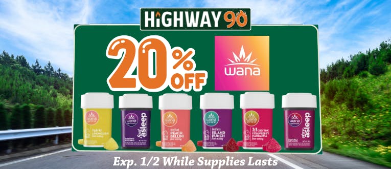 🍯40% Off Cali Honey🍯 🍬30% Off OGeez!🍬 ❤️30% Off Journeyman❤️ ❄️20% Off Wana❄️ 🌿20% Off Kind Tree🌿 🛣️35% Off At Your 1st Visit 🛣️20% Off At Your 2nd Visit 🛣️25% Off At Your 3rd Visit 📲Update Your Highway 90 App For The Latest Version!
