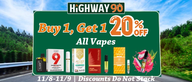 🛣️Weekend Deals: 🔥Buy 1, Get 1 20% Off All Vapes🔥 🖤50% Off Licorice Bites🖤 🍪30% Off Cannabis Philosophy Cookies🍪 🍉25% Off Watermelon Spritz Camino🍉 ❄️$65 Snowball Live Resin Disposable❄️ ⭐$50 Rythm 3.5g⭐ 🍯20% Off Cali Honey 2g Disposables🍯