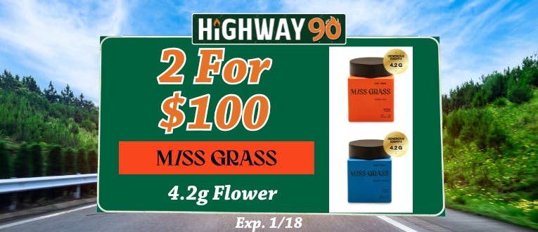 🍃30% Off Half Ounces🍃 🍃30% Off Ounces🍃 🥤30% Off Journeyman🥤 ✨20% Off Motorbreath 15 Rosin✨ ⚡20% Off High Wired Infused 1g Pre-Rolls⚡ 🍬30% Off OGeez!🍬 🛣️35% Off At Your 1st Visit 🛣️20% Off At Your 2nd Visit 🛣️25% Off At Your 3rd Visit 📲Update Your Highway 90 App For The Latest Version!