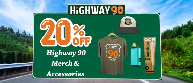 🔥4/20 Is Almost Here! Storewide Deals, Goodie Bags, Giveaways, Food Trucks & MORE! 🔥        🛣️NEW: THC Drinks Are Here!🥤                🍓50% Off OGeez!🍓               ⭐40% Off Jersey Smooth⭐                      🌿35% Off Miss Grass🌿         💎20% Off Timeless & Noir💎          🍃25% Off Half Ounces & Ounces🍃        🛣️35% Off At Your 1st Visit           🛣️20% Off At Your 2nd Visit          🛣️25% Off At Your 3rd Visit          📲Update Your Highway 90 App For The Latest Version!