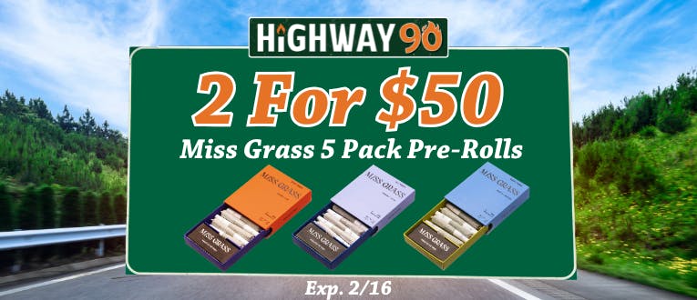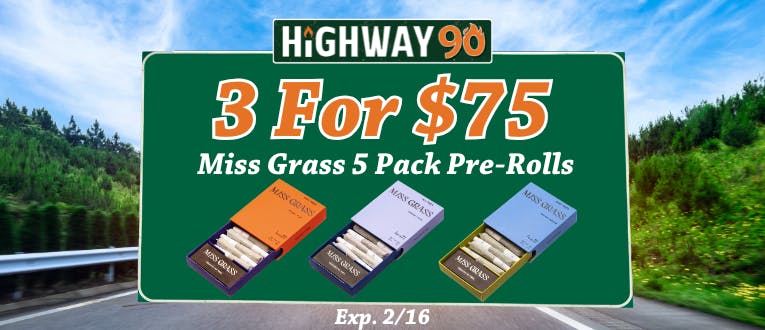 🛣️20% Off Storewide! 🥭40% off Mangonada 1g Cart🥭 🍃25% Off Half Ounces🍃 🍃25% Off Ounces🍃 ☀️50% Sun Black Cherry Gelato Live Resin Badder☀️ 🍬30% Off OGeez!🍬 🌿7g Ozone & Simply Herb Bundles🌿 💗2 For $50 or 3 For $75 Miss Grass 5pk Pre-Rolls💗 ✨2 For $100 Miss Grass 4.2g Flower✨ 🌿1g Pre-Roll Bundle🌿 🛣️35% Off At Your 1st Visit 🛣️20% Off At Your 2nd Visit 🛣️25% Off At Your 3rd Visit 📲Update Your Highway 90 App For The Latest Version!